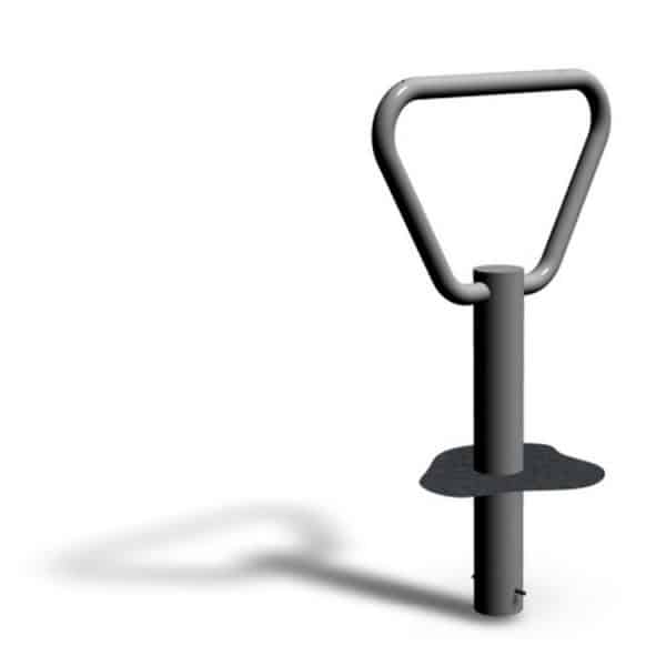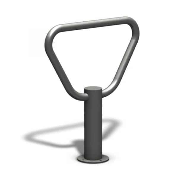Dieser Anlehnbügel bietet eine weniger verbreitete Form, die somit sicherlich im Gedächtnis bleibt. Ideal, um einen Fahrradparkplatz stilistisch aufzuwerten.