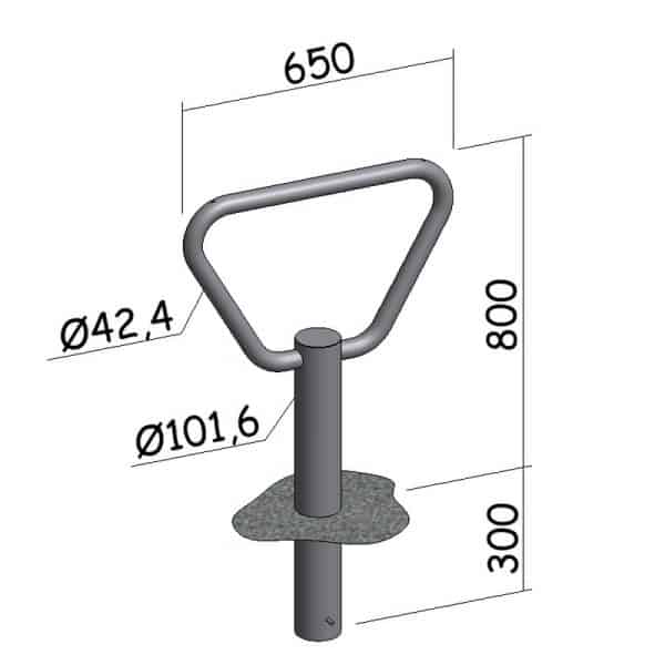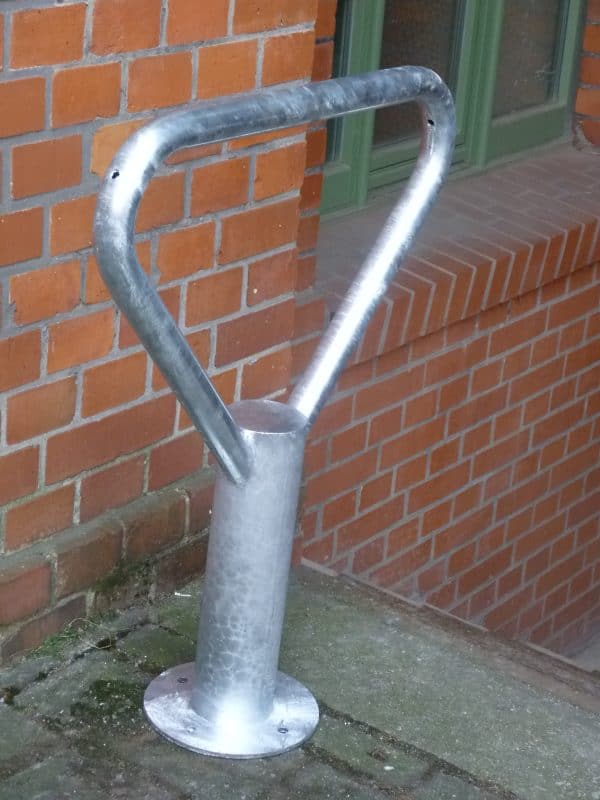 - Fahrradständer aus gebogenem Stahlrohr Ø 42,4mm mit einem Standfuß aus Stahlrohr Ø 101,6mm