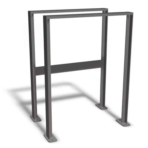 Es kann auch auf einem Rahmensystem aufgeschraubt werden. Die Anlehnplätze wären somit beliebig erweiterbar. Dieses Rahmensystem ist zur Freiaufstellung sowie zum Aufdübeln geeignet.