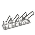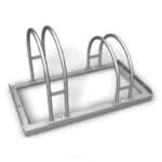 Dieser Fahrradständer kann von beiden Seiten benutzt werden, da die Vorderräder in verschiedenen Höhen eingestellt werden.