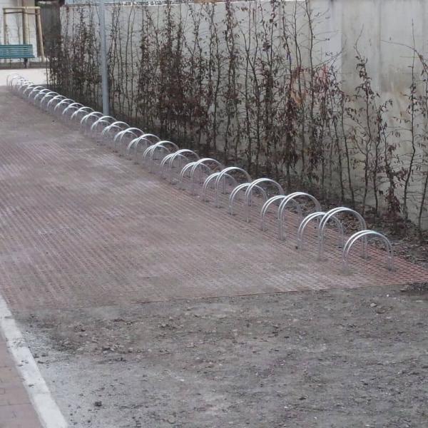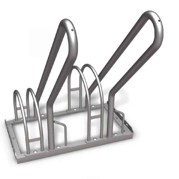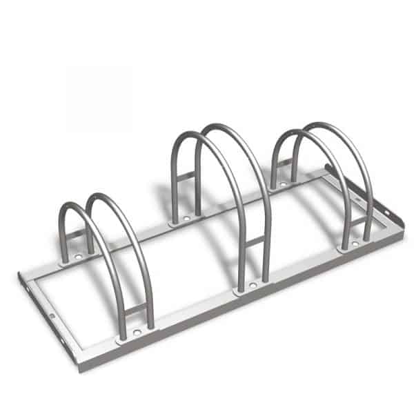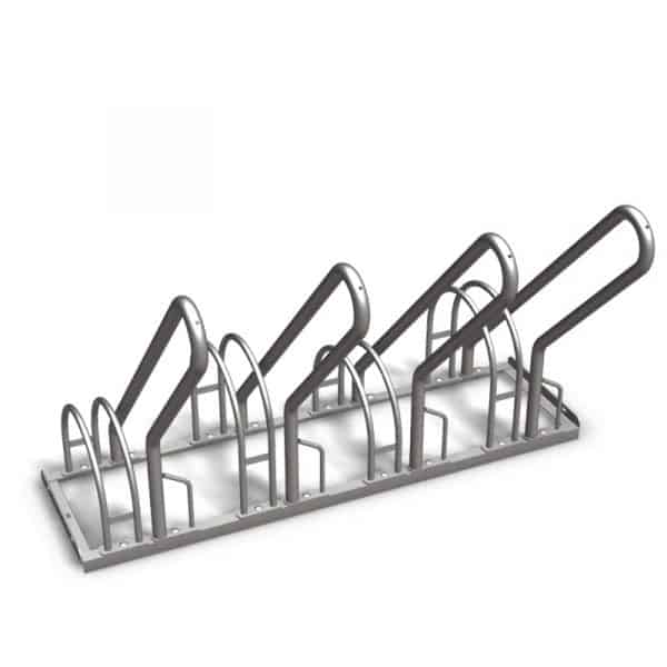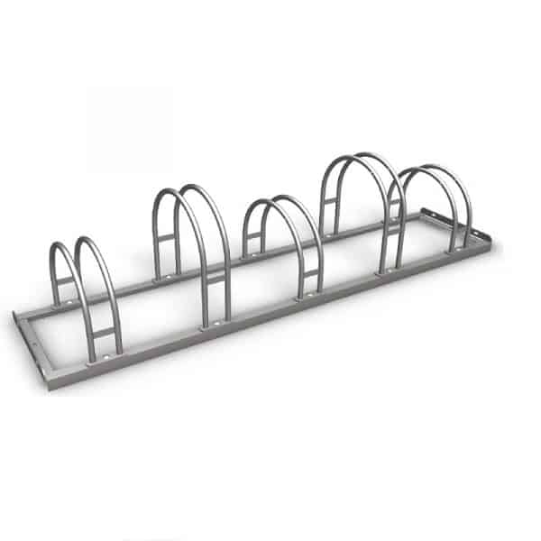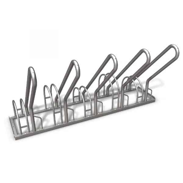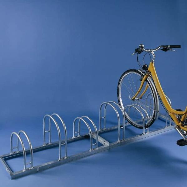 Serienmäßig hat dieser Fahrradständer zwei bis fünf Stellplätze, kann aber auch mit noch mehr Stellplätzen hergestellt werden.