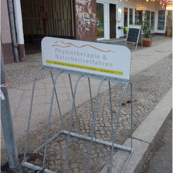 Der Fahrradständer Modell Pankow gehört zu unserer Reihe Fahrradständer mit Werbeschild.