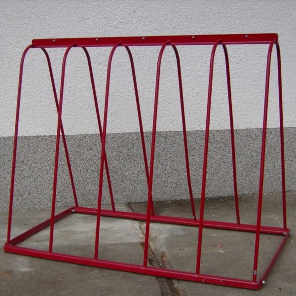 Serienmäßig hat dieser Fahrradständer vier oder fünf Stellplätze.