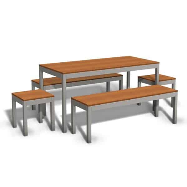 - Die Sitz- und Tischflächen sind direkt mit der Unterkonstruktion verschraub und schließen an den Außenkanten mit dem Rahmen ab.