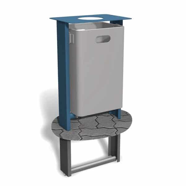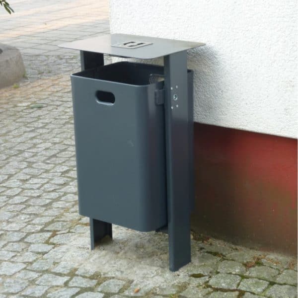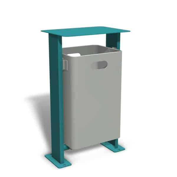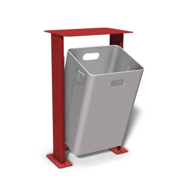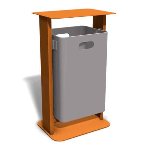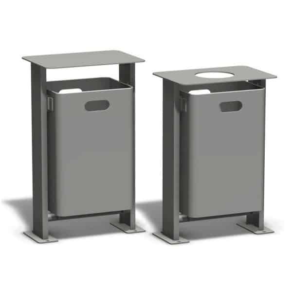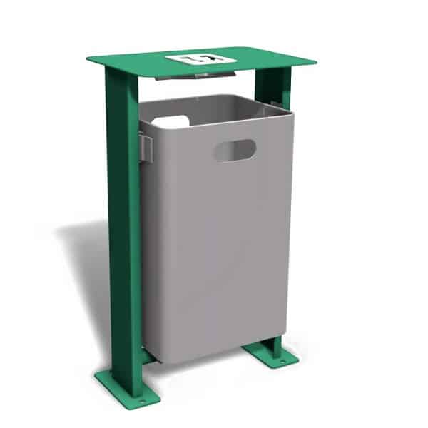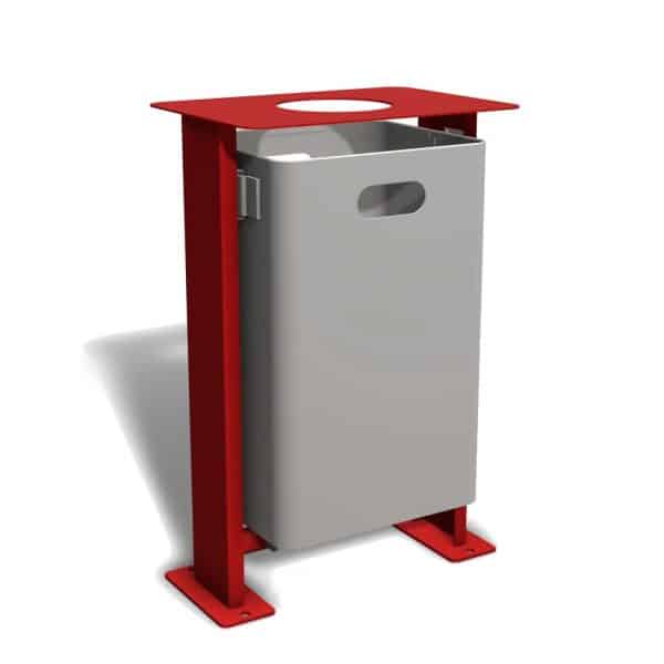 viereckiger Standbehälter, Gestell aus verzinktem Stahlblech, mit Stahlabdeckung, wahlweise mit Einwurfsöffnung oben oder vorne und hinten, Verriegelung über Dreikant-Schnappschloss, Fassungsvermögen 60 Liter