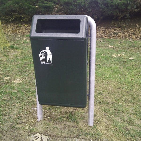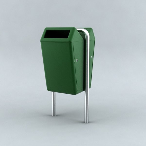 - wahlweise mit einem oder zwei Behältern an einem Bügelpfosten