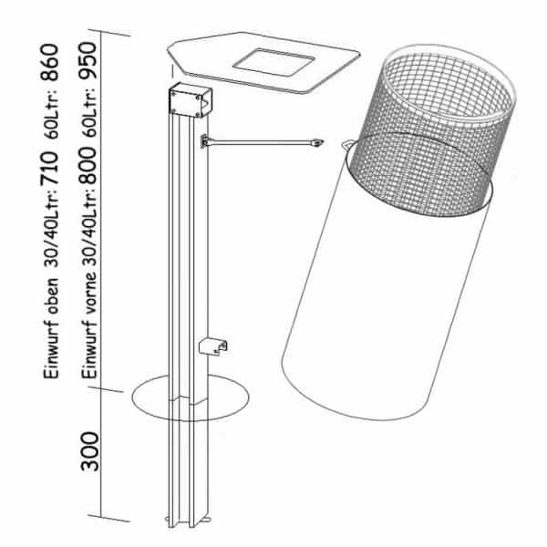 | Befestigung | Anschrauben, Einbetonieren, Freistehend |