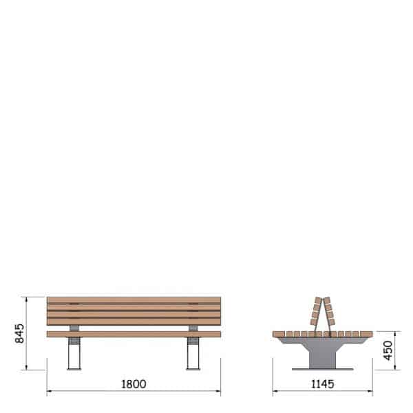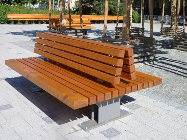 • Parkbank mit Rückenlehne und Armlehnen