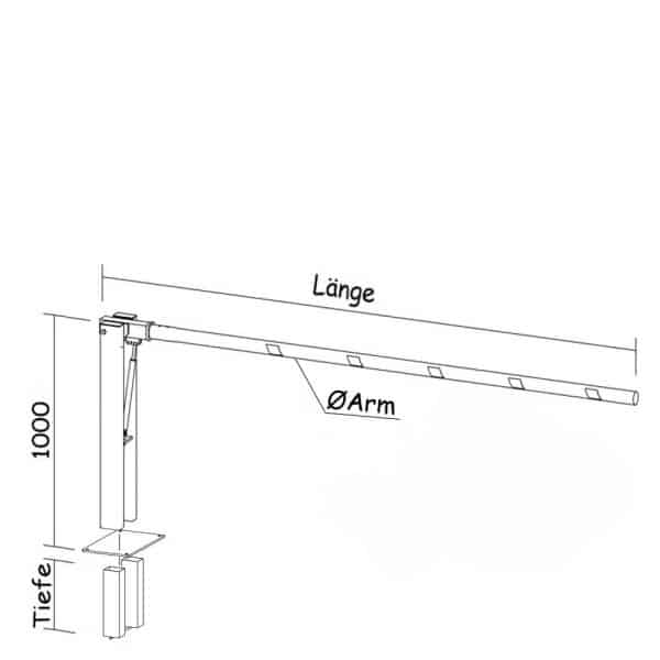 • Ab einer Länge von 2500mm empfehlen wir den Einsatz eines Auflagepfostens für Ihre Schranke