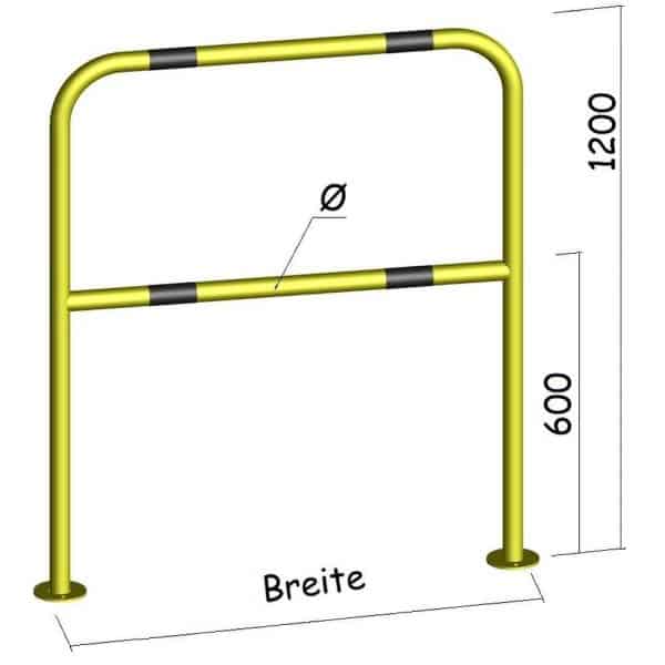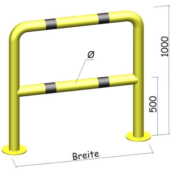 - Ausführung: für Außenbereich verzinkt & pulverbeschichtet (gelbe Beschichtung mit schwarzen Warnstreifen) oder Edelstahl (mit Warnstreifen)