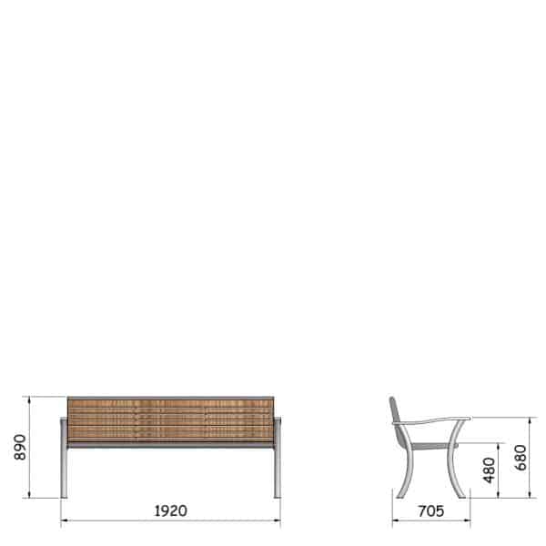 - Parkbank mit Rückenlehne und mit verlängerten Armlehnen