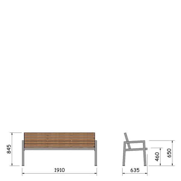 - Parkbank mit Rückenlehne und mit Armlehnen
