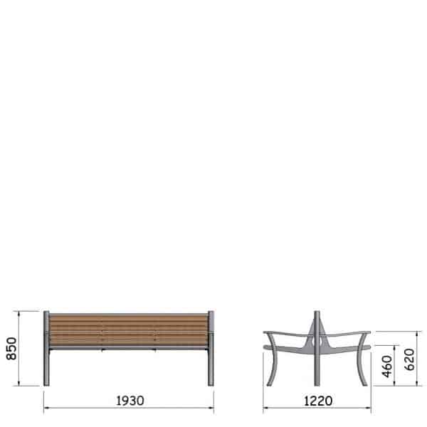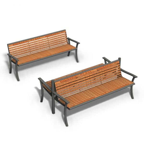 - Parkbank mit Rückenlehne und mit Armlehnen einseitig oder beidseitig